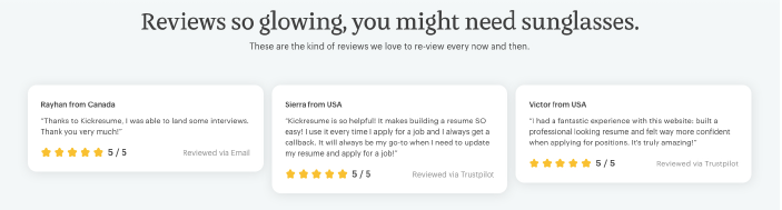 Kickresume is highly praised for its design quality and comprehensive feature set.